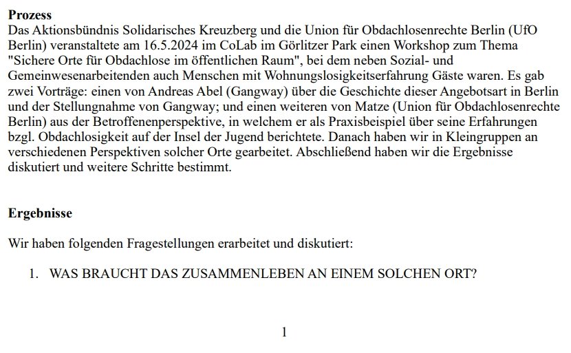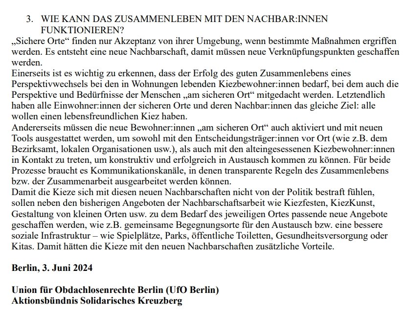 Seit einiger Zeit setzt sich UfO Berlin mit dem Thema „Sichere Orte für obdachlose Menschen“ auseinander. Wir arbeiten mit dem Aktionsbündnis Solidarisches Kreuzberg daran, dass es ein Konzept dazu gibt, wo es eine einheitliche Definition für diese Orte gibt. Dennoch ist es uns sehr bewusst, dass diese Orte sehr unterschiedlich aussehen können.