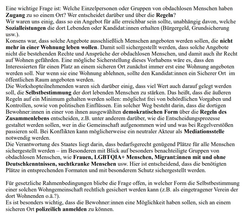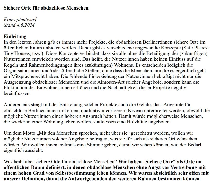 Hier findet ihr unsere Arbeit zu sogenannten „Safe Places“, auf deutsch „Sichere Orte für obdachlose Menschen“.